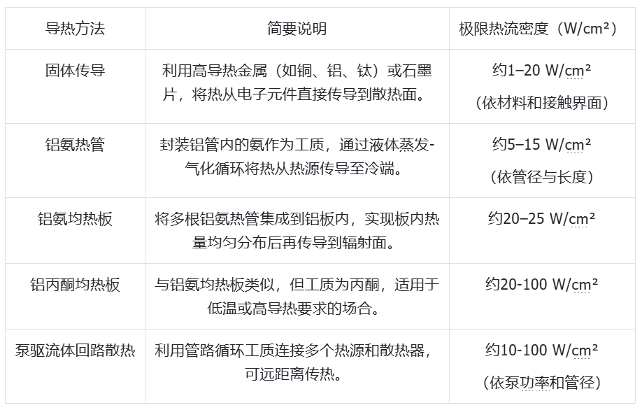 下表中列出了常见的太空导热方法,GPU芯片热流密度远超常规太空散热技术极限。